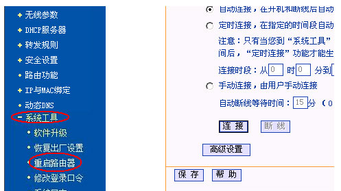 3.登录后,点击左边的“系统工具”,再选择“重启路由器”链接: